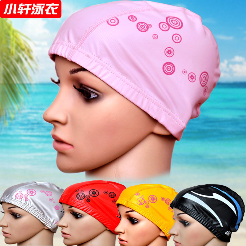 Summer Stunning Comfort Swimming Cap Lady Long Hair Waterproof PU Cloth Fashion Protective Ear Pure Color Bubble Spa Large Red School Swimming Cap