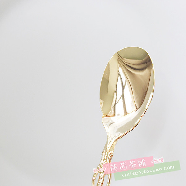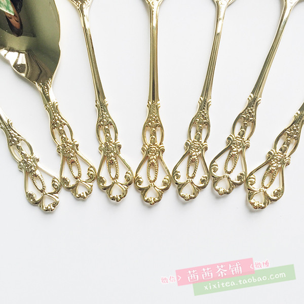 Spot salus Japanese tableware vintage carved cutout stainless steel gold plated small teaspoon gold teaspoon exquisite