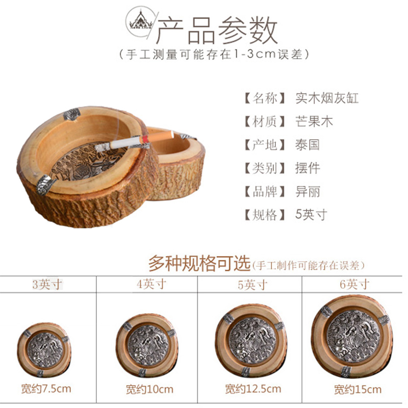 Yili Thailand retro solid wood ashtray creative personality handmade hotel bar ashtray large Father's Day gift