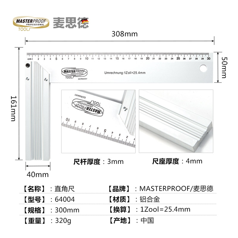Maxide woodworking ruler right angle ruler 90 degree angle ruler Corner ruler German aluminum alloy angle measuring tool 30cm