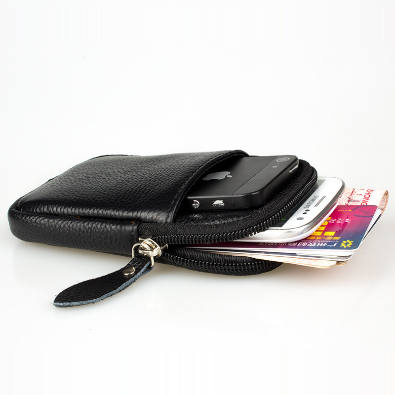 Men Genuine Leather iPhone5S Mobile Phone Pocket 4 5 Inch Cow Leather Wearing Strap Multifunction Small Zero Wallet