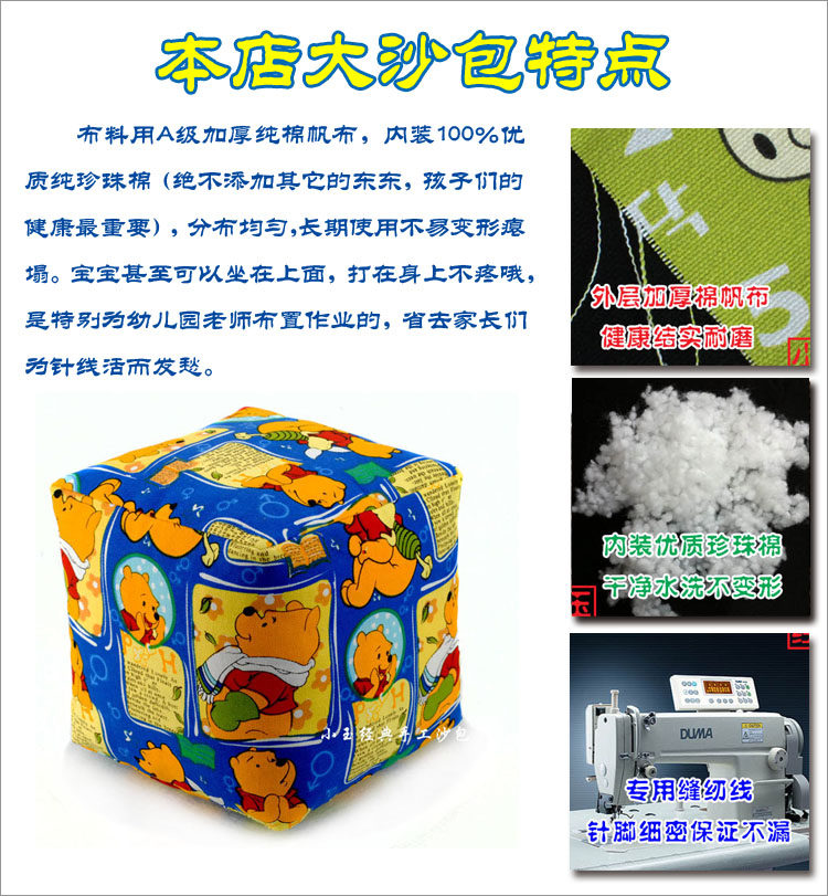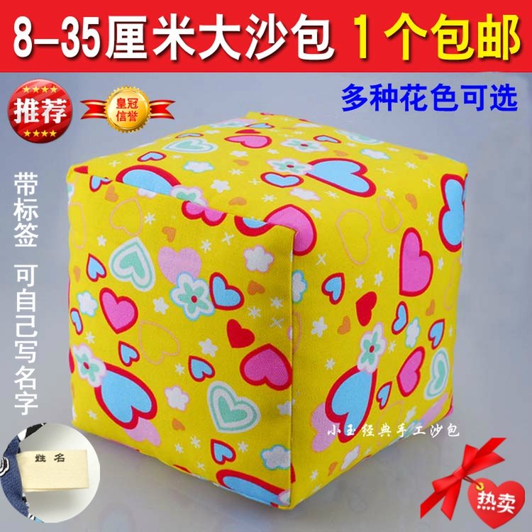 Sandbag Size Size Reference Figure 8 cm Small car (buckwheat shell) 8 cm coloured strips (buckwheat shell) 8 cm 8 cm small fish (buckwheat shell) 8 cm colored panes (buckwheat shell) 8 cm white bottom dinosaur (