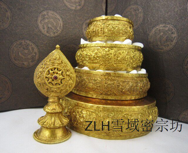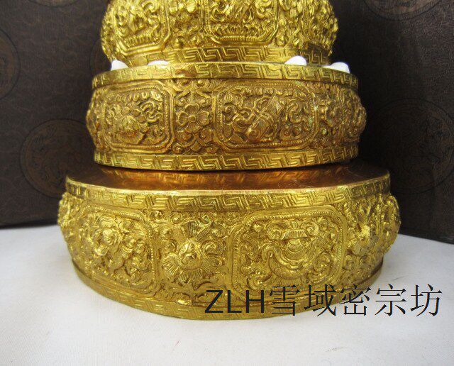 Tibetan Buddhist supplies wholesale Nepal handmade brass gilt Manza pan large Mandarin Mandarin Mandarin