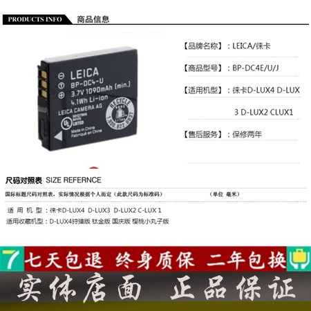 leica Leica Camera D-LUX4 D-LUX3 D-LUX2 C-LUX1 Battery BP-DC4 original battery