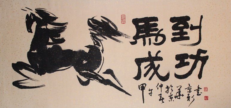Ma to success Office calligraphy and painting Living room Dragon and Horse spirit Original calligraphy works Famous handwritten authentic works have been mounted