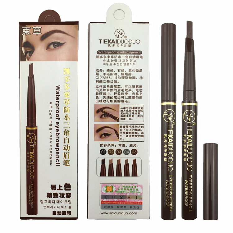 Caido multi-beam grass automatic eyebrow pen waterproof and sweat-proof and color color is not easy to make-up rotating triangle eyebrow pen