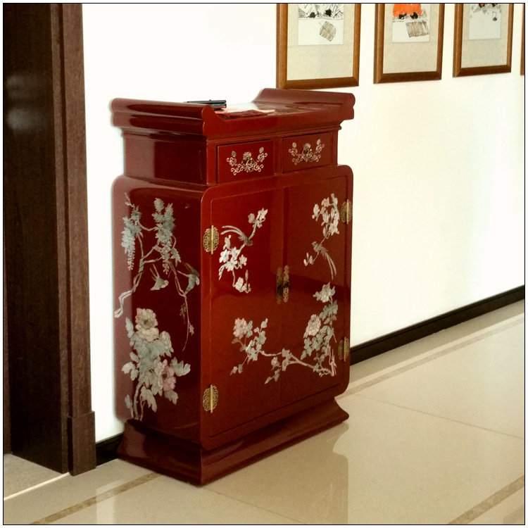 Yangzhou lacquerware shell inlaid flat-milled snail-shaped vase-shaped porch decorative cabinet lacquer art new Chinese-style classical furniture