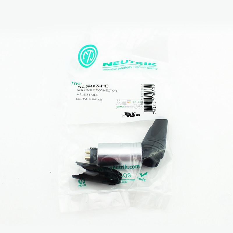 NEUTRIK Yuke NC3MXX-HE velvet Chrome Caron male head XLR high temperature resistant flame resistant Carnon head fever