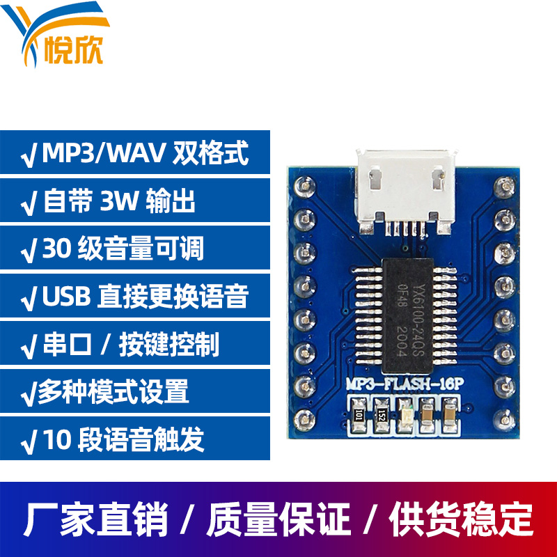 Yuexin serial port MP3 voice module SPI drive USB voice USB singlechip player MP3-FLASH-16P