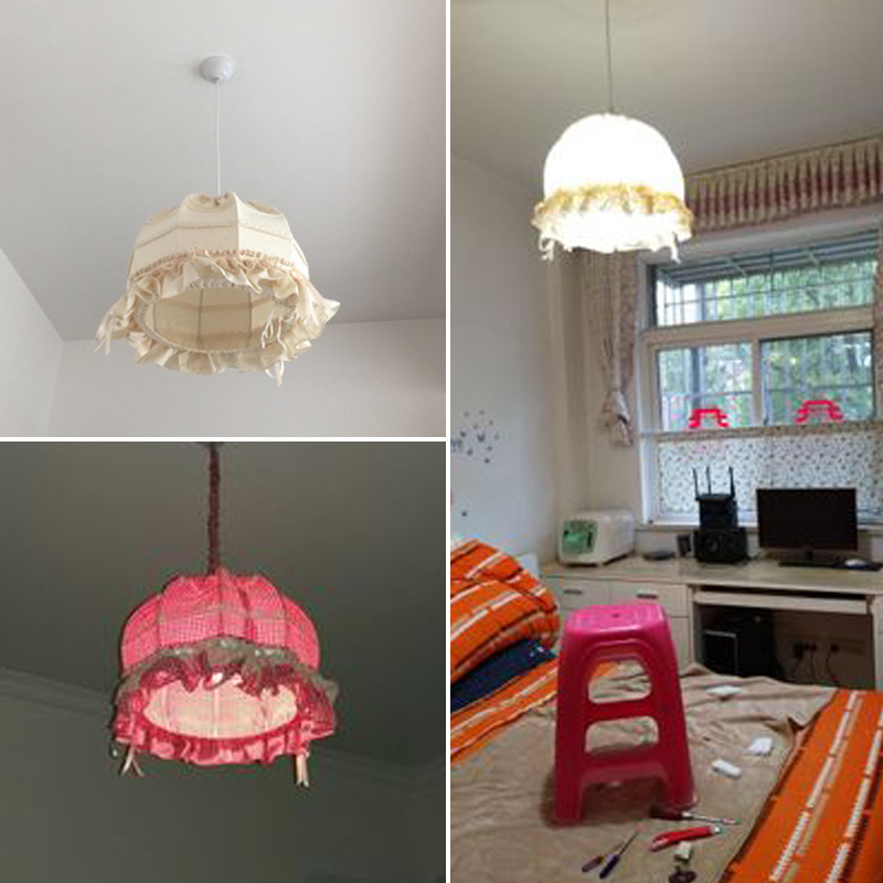 Red Plaid Lace Cloth Art Pendant Light Cloth Art Lamp Han Style Fields Garden Chandelia Bedroom Pendant Light Lace Pendant Lamp