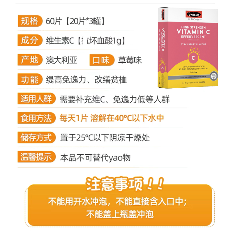 Australian Swisse VC Foaming Ingots Vitamin C High Concentration Tablets Plus Expanded 60 grains