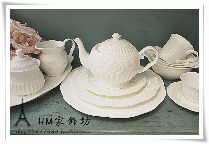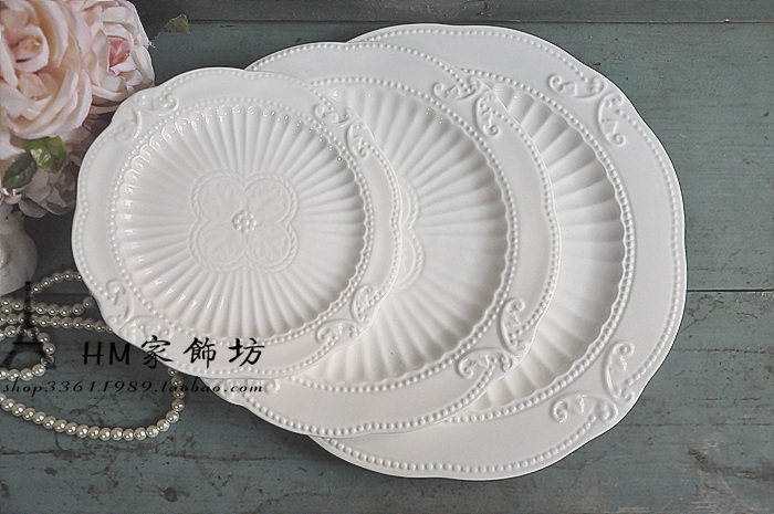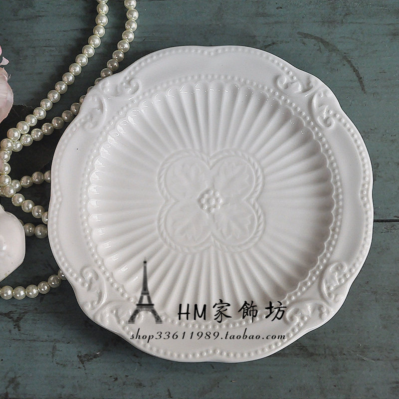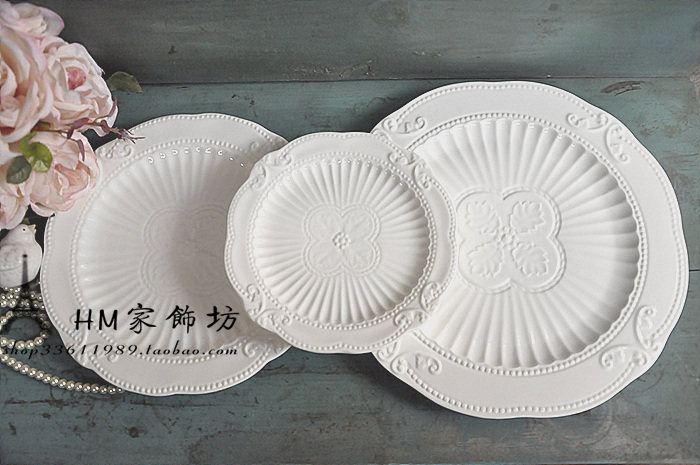 European Zakka Relief Ceramic Tableware Set Bone Porcelain Afternoon Tea Dish Cake Disk Fish Dish