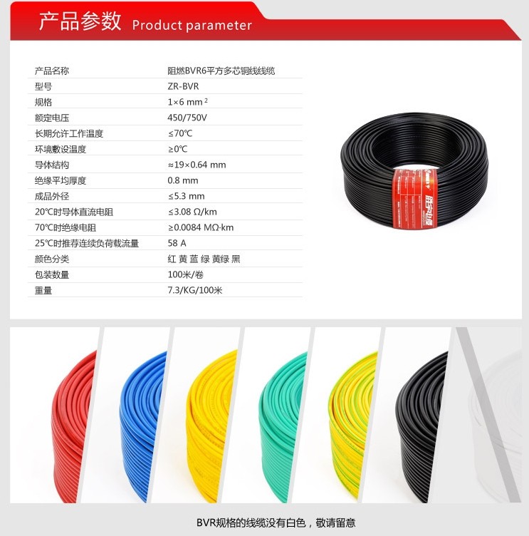 Guangdong Shengyu Billboard ZCBVR 6 squared flame retardant multi-strand copper core soft wire central air conditioning connecting wire home assembly wire
