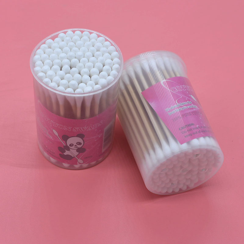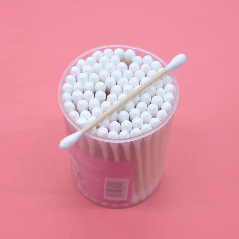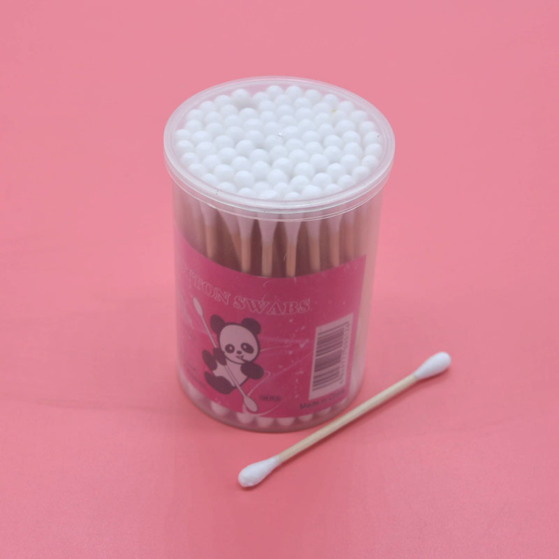 Cylinder Wood Stick Cotton Stick Double Head Cotton Stick Wood Cotton Ball Plastic Drum Wood Rod Cotton Stick Full