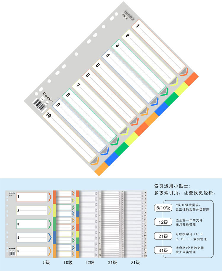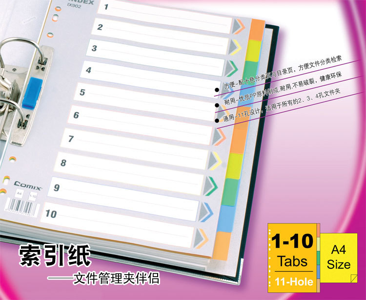 ZiHeart (COMIX) IX902 Five color indexed paper A4 11 holes PP ten Page paginated paper sorting paper