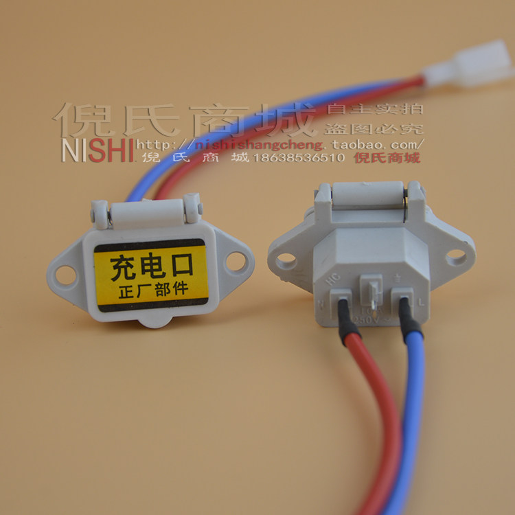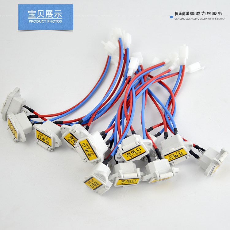 Electric car electric bottle car charging outlet charger socket charging head three-hole socket with wire cover automatic drop cover