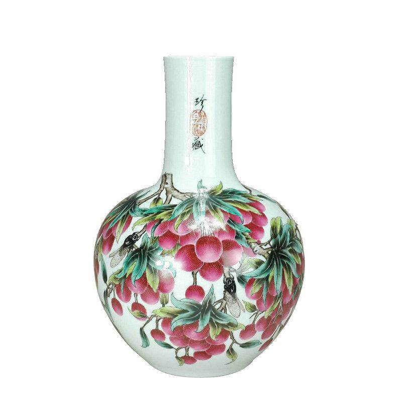 Jingdezhen ceramic pastel hand-painted master Yu Jinxi's work "fruitful" vase decoration ornaments