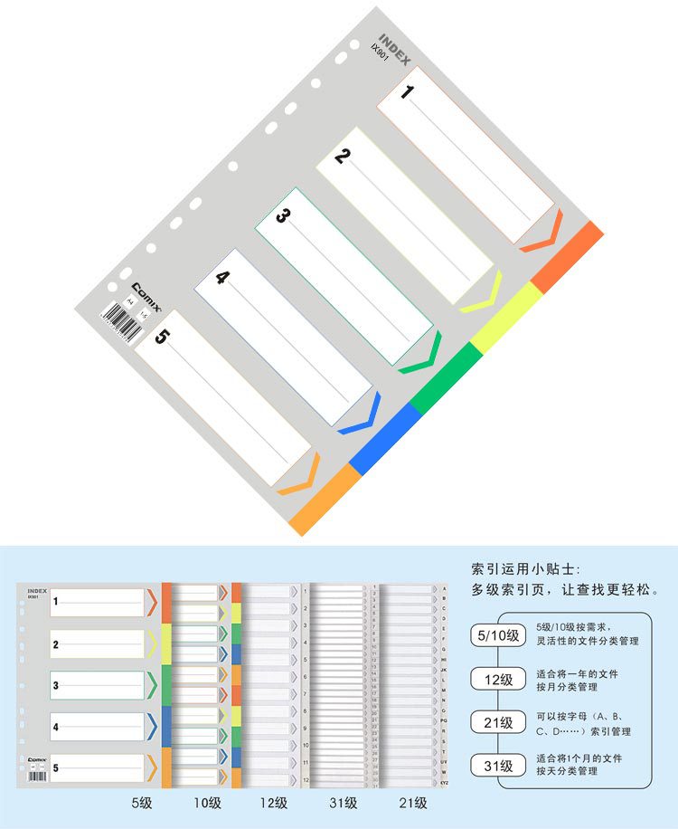 ZiHeart IX901 Sorting Paper Five Color Index Paper 5 Color Plastic Sepp Sheet 11 Holes PP Color A4 Paginated Paper