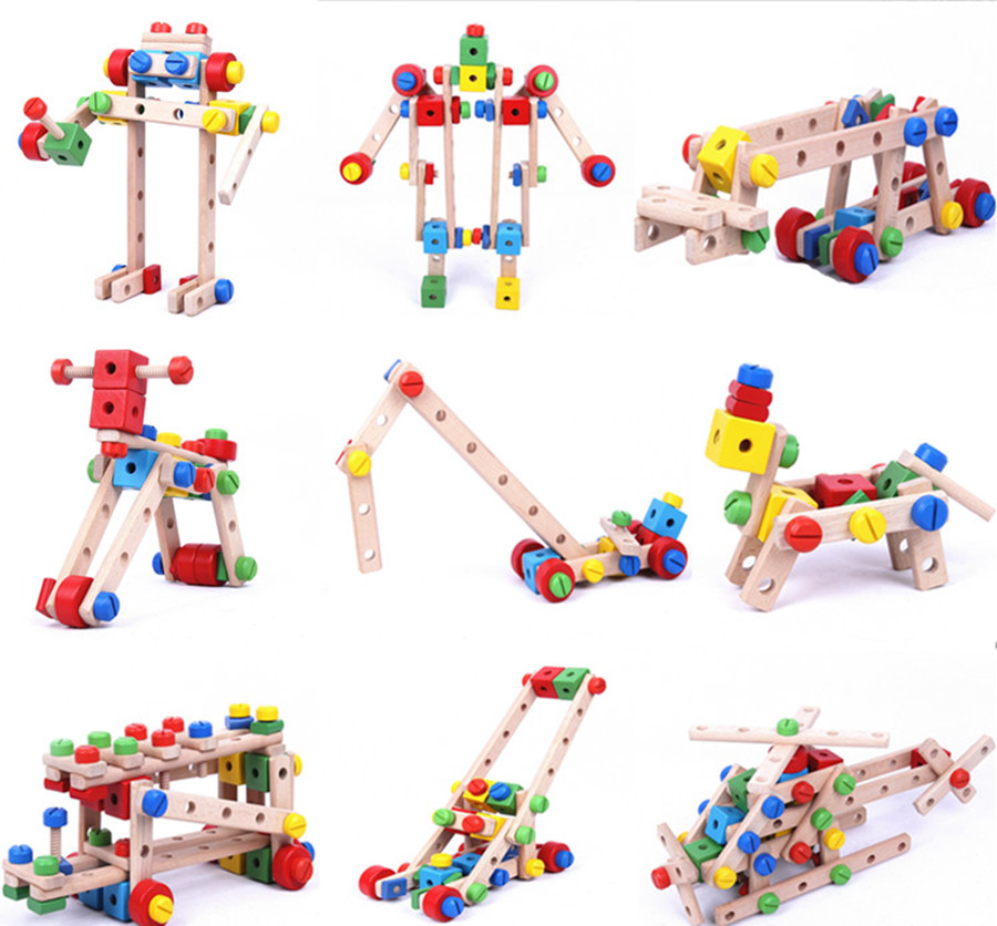 100 variable nut car combined removable wooden puzzle handmade toy Children assembly nut disassembly combined toy