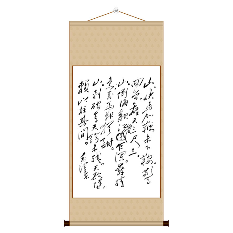 sixteen word order of four-size canvas strips of vertical shaft straw calligraphy brush calligraphy soft framed calligraphy and calligraphy painting Mao Zedong