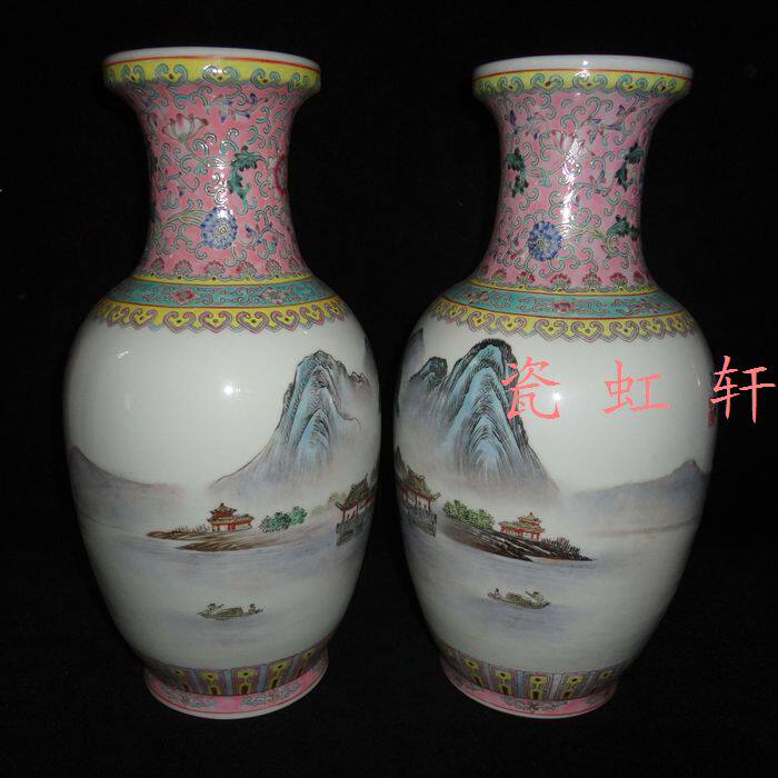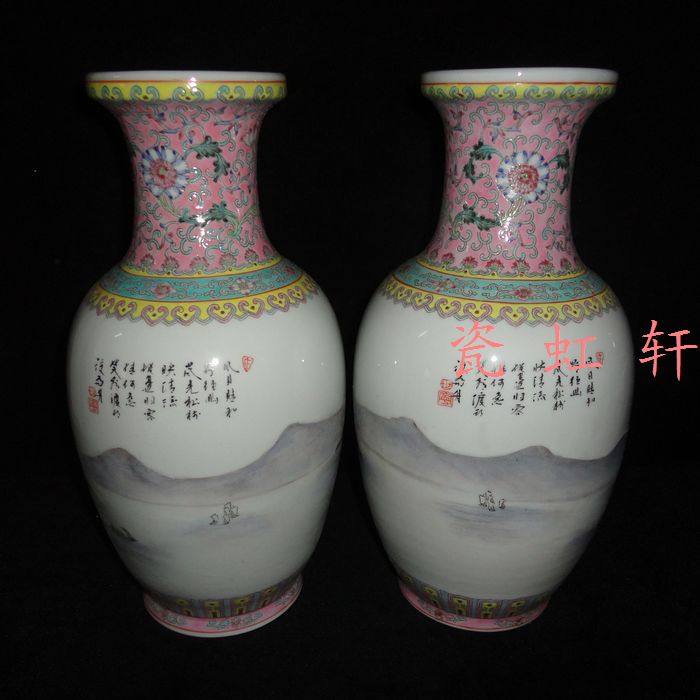 Jingdezhen Wenge Porcelain Factory Goods Ceramics Pastel Hand Painted Red West Landscape Flower Basket Vase Vase Bao Lao
