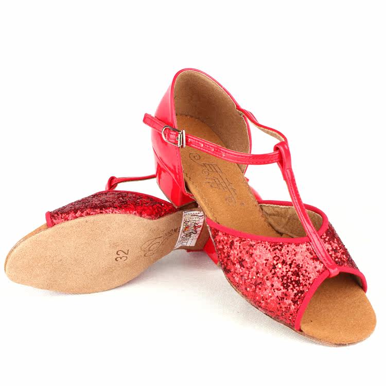 Betty BD Latin Dance Shoes Children's Latin Dance Shoes 602 Children's National Standard Dance Shoes Red Sequins