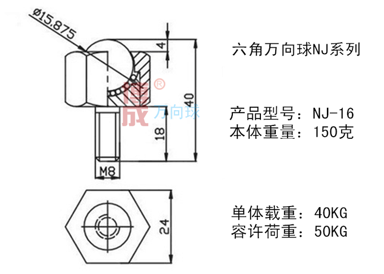 Bosei universal ball direct selling hexagon with rod NJ-16 universal ball bull eye bearing transport ball main ball Nylon pearl