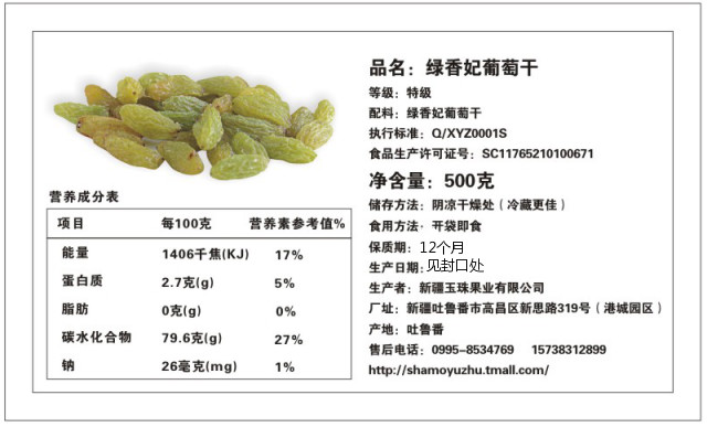 21 new super large seedless special green Fragrant Concubine raisins 500g Xinjiang Turpan specialty non-wash dried fruit snacks