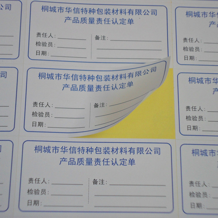 Printed on the copper version of the paper adhesive label: