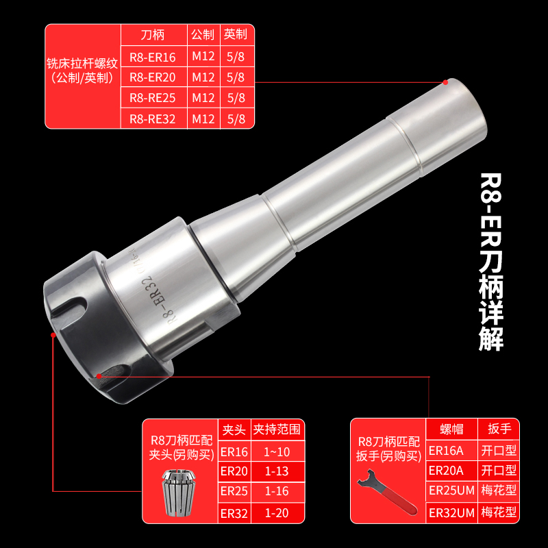 R8-ER16R8-ER20R8-ER25R8-ER32R8-ER40 Pull rods have metric rpm Please take notes Metric rpm M12 7 16