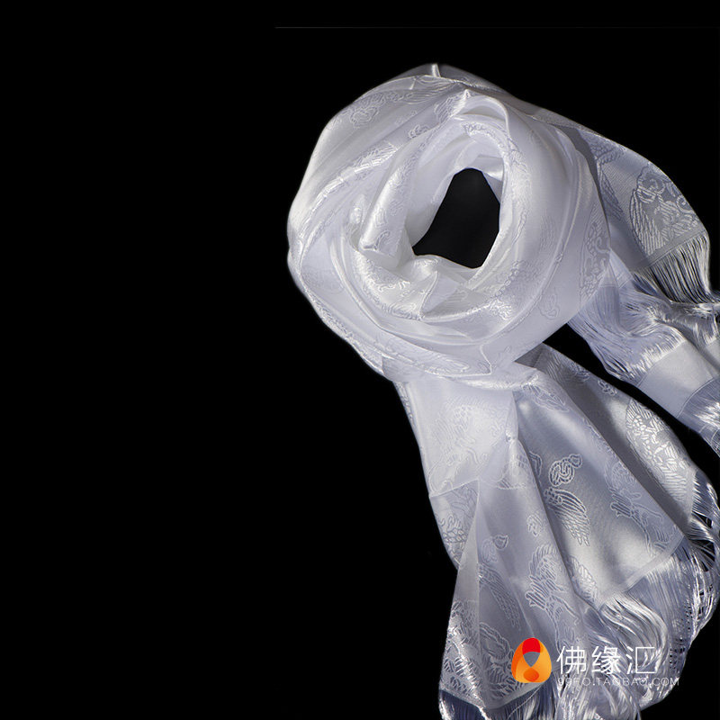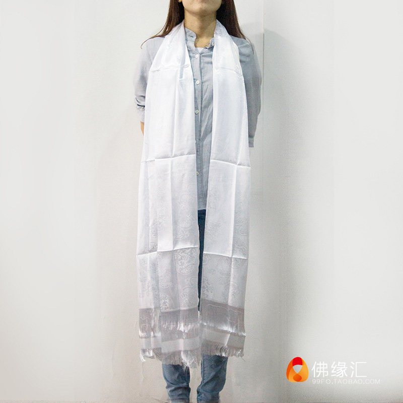 Buddha's Edge Hui Tibetan Buddhist Supplies Tibetan Ornaments Tibetan Jacquard Dragon Pattern 250cm*44cm White Hatta