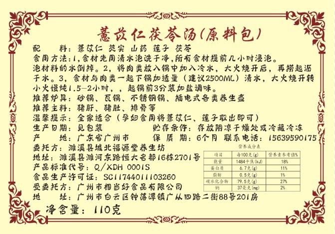 Coix cocos soup IV Raw Material Pot raw material Children's conditioning Porridge Flow After a Small and Lunar Sub-Meal Conditioning Soup