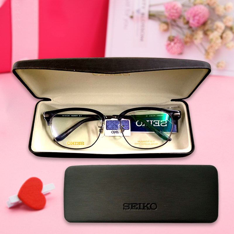 Original Seiko SEKIO anti-pressure and anti-pressure drawing black old light myopia simple anti-pressure glasses case mirror cloth student