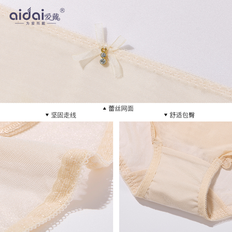 Love lace edge sexy transparent hollow mesh underpants in waist hips comfortable viscose fiber safety pants