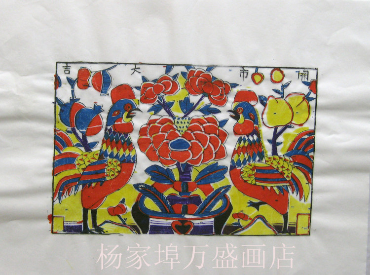 Weifang Yangjiabu Woodblock Year Painting White Yellow Xuan Paper Opening City Big Gei Handmade handmade glove color printing