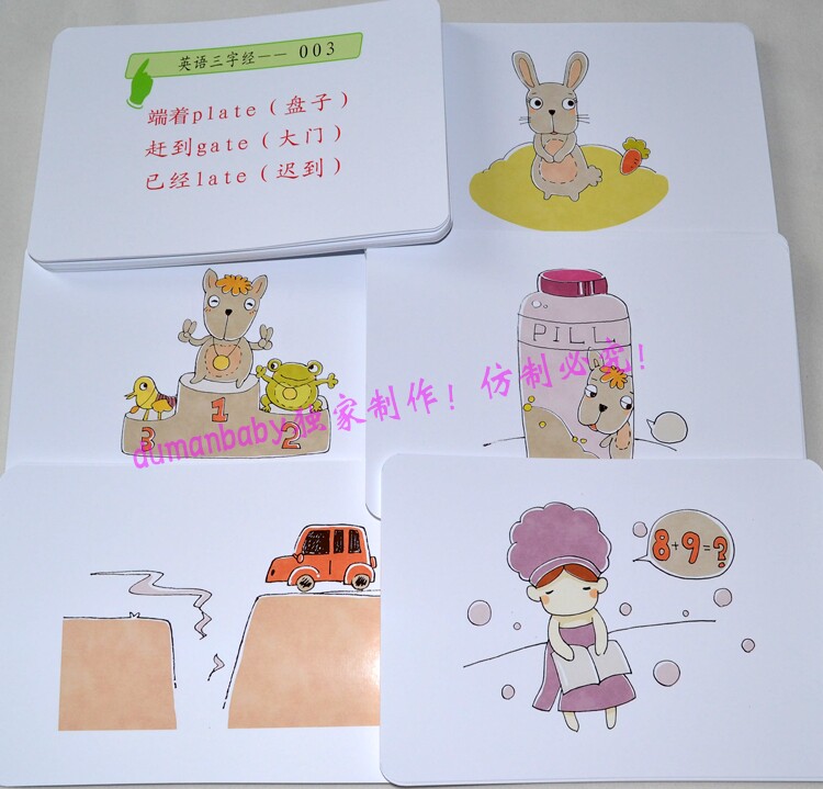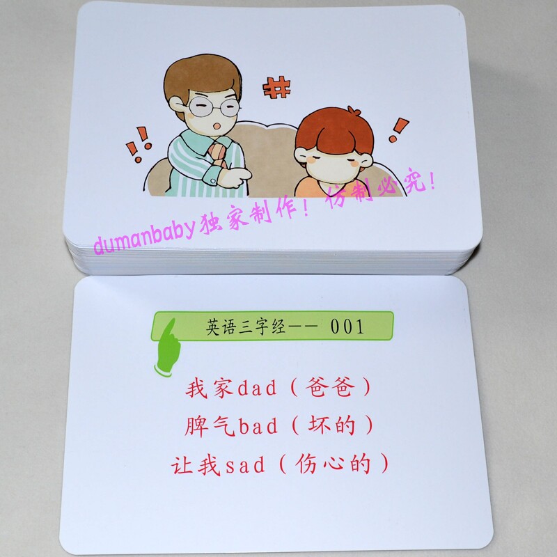 English Three-character Sutra Card]Early education flash card English word Carduman concept Early English enlightenment reading training