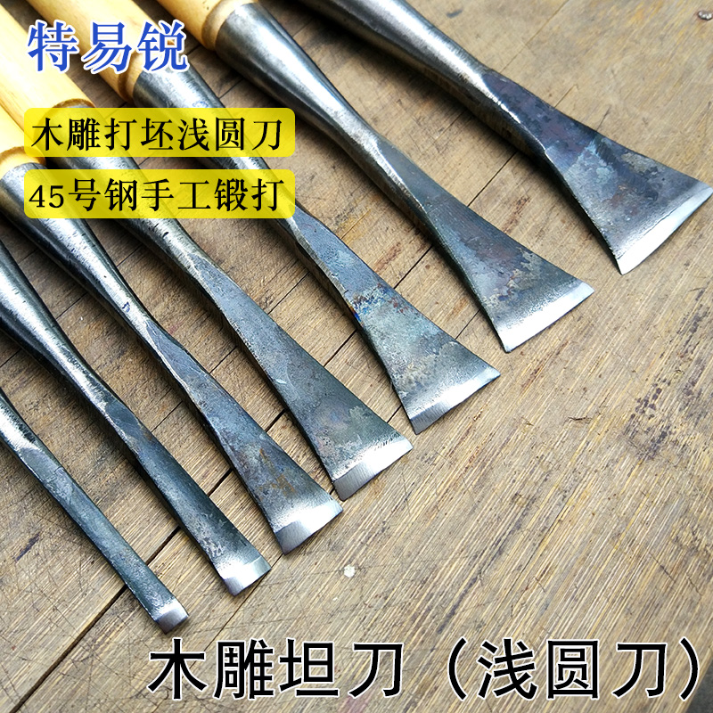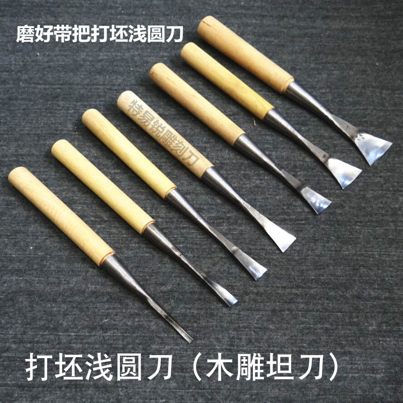 Wood carving tools Tang knife Dongyang manual woodworking carving knife Large diameter shallow round belt grinding billet shallow round knife