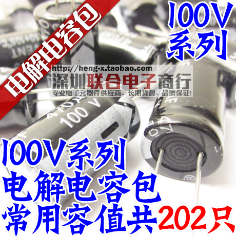 100V in-line electrolytic capacitor package Component package 100V 1UF-470UF commonly used 10 kinds of capacitance values a total of 202