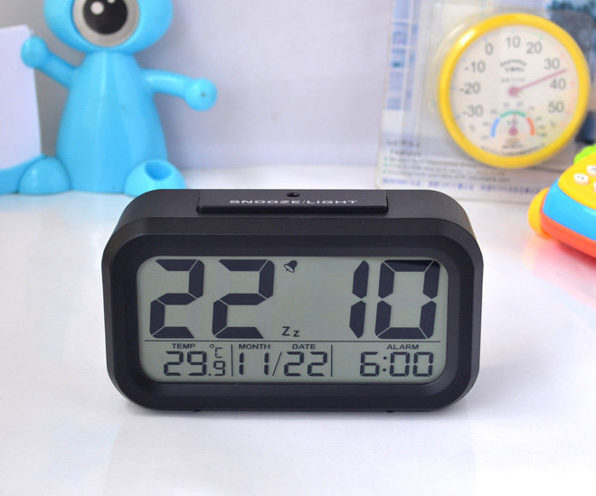 New temperature shows clever alarm clock large display screen clever lamp bell mute alarm clock light induction clock