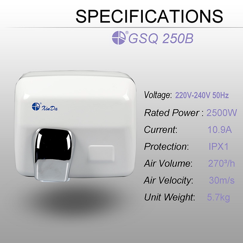 Cinda GSQ250B wall-mounted automatic induction hand dryer stainless steel hand dryer hotel wall-mounted hand dryer