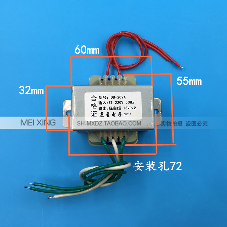 EI type transformer 220V to 13V*2 double 13V 0 8A power 20W all-copper power amplifier transformer