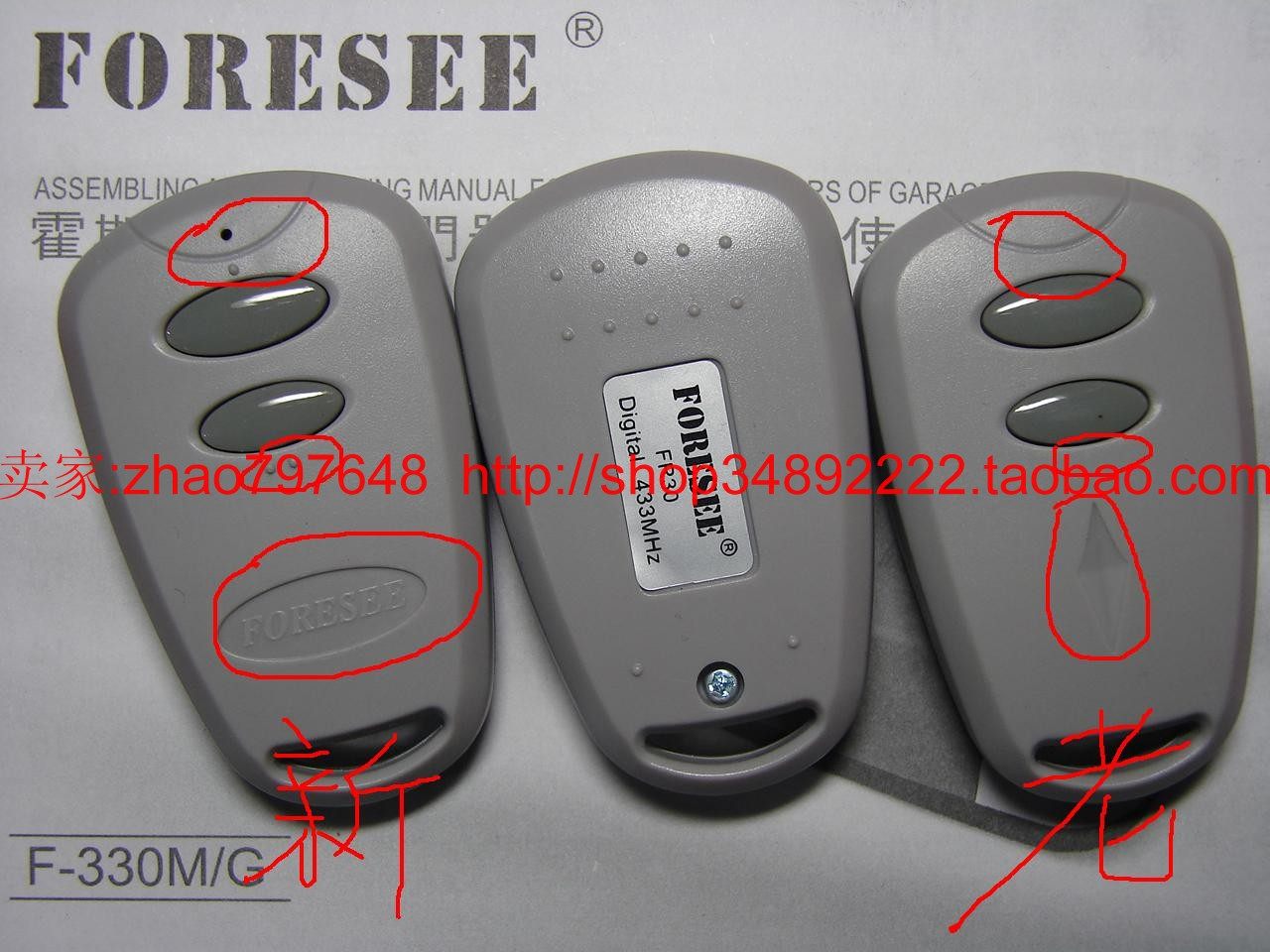 FORESEE Hoss garage door opener F-330M original new FR30 remote control