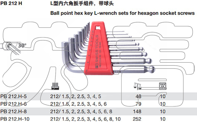 Original Swiss PB SWISS TOOLS HEXAGON ball wrench set PB 212 H-5 6 8 10