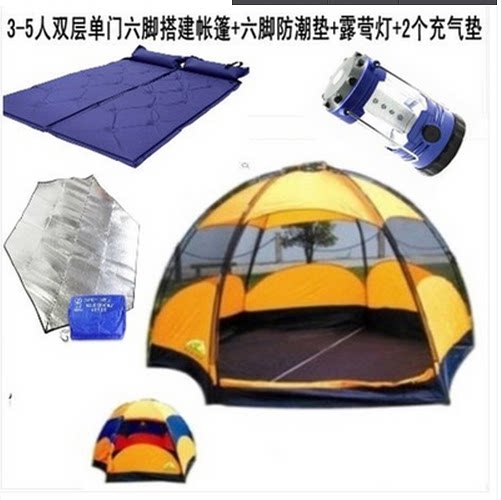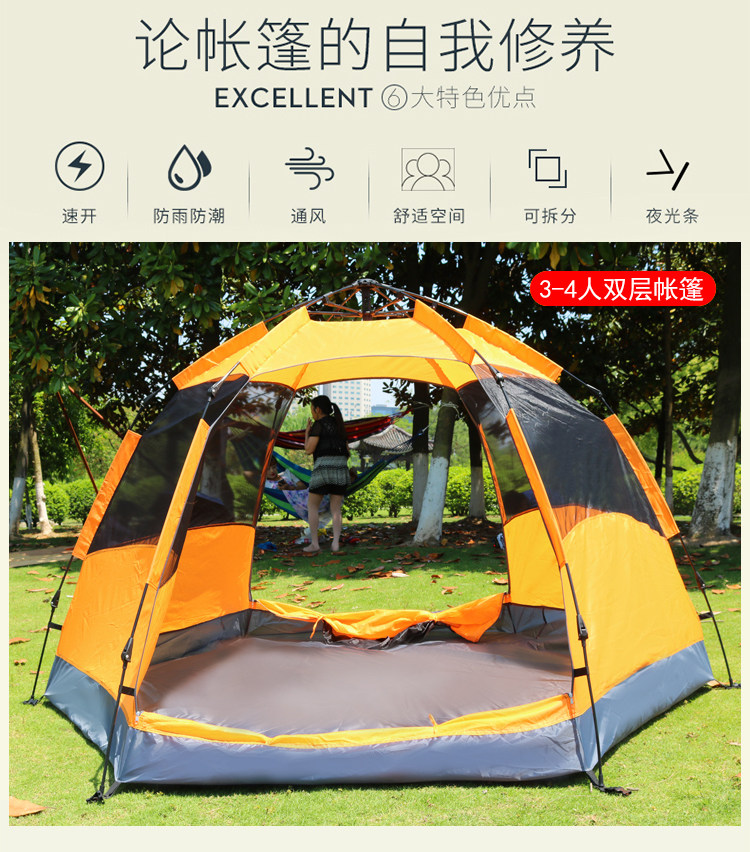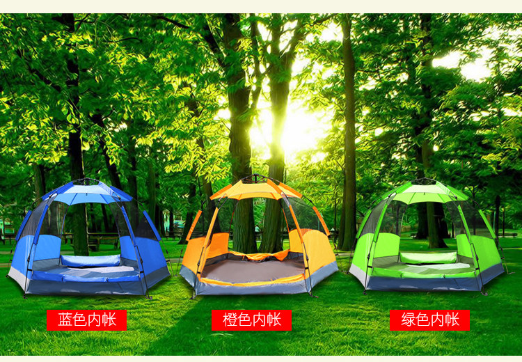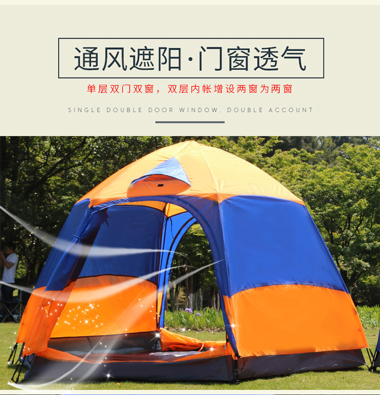 Outdoor Hexagon Double Double Door Press Glue Rain Protection 3 To 5 People Camping Automatic Adult Tent-Taobao