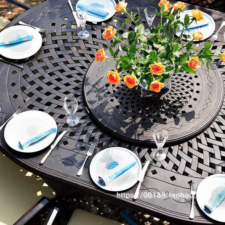 Outdoor Leisure Table and Chair Outdoor Casting Aluminum Desk and Chair Furniture Villa Garden Garden Garden Oval - style Aluminum ellipse