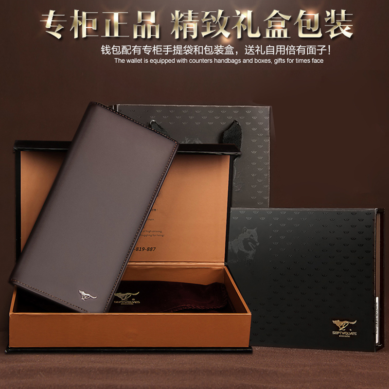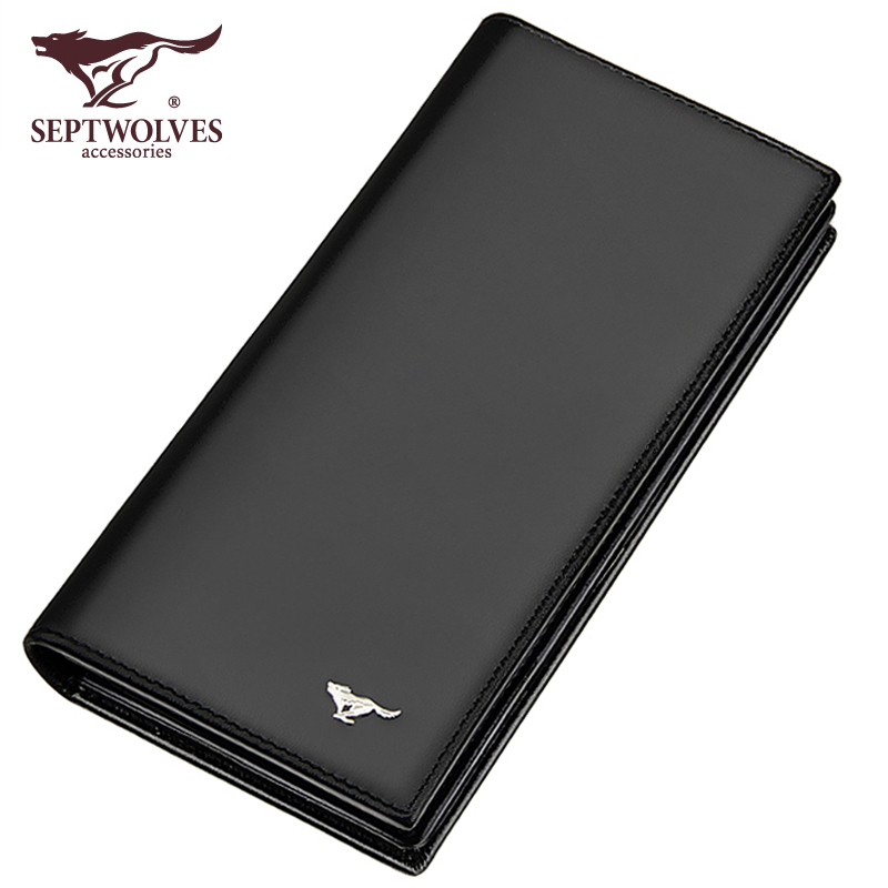 Seven Wolves Long Wallet Brand Men Genuine Leather Long Version Money Clip With Buckle Chain Pure Head Layer Bull Leather Clip Tide