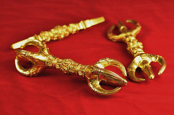 Tang Mi Dharma Device Dong Mi Dharma Device True Word Dharma Device Tang Mi Vajra Pestle True Word Dharma Vajra Vajra gilt three-piece set