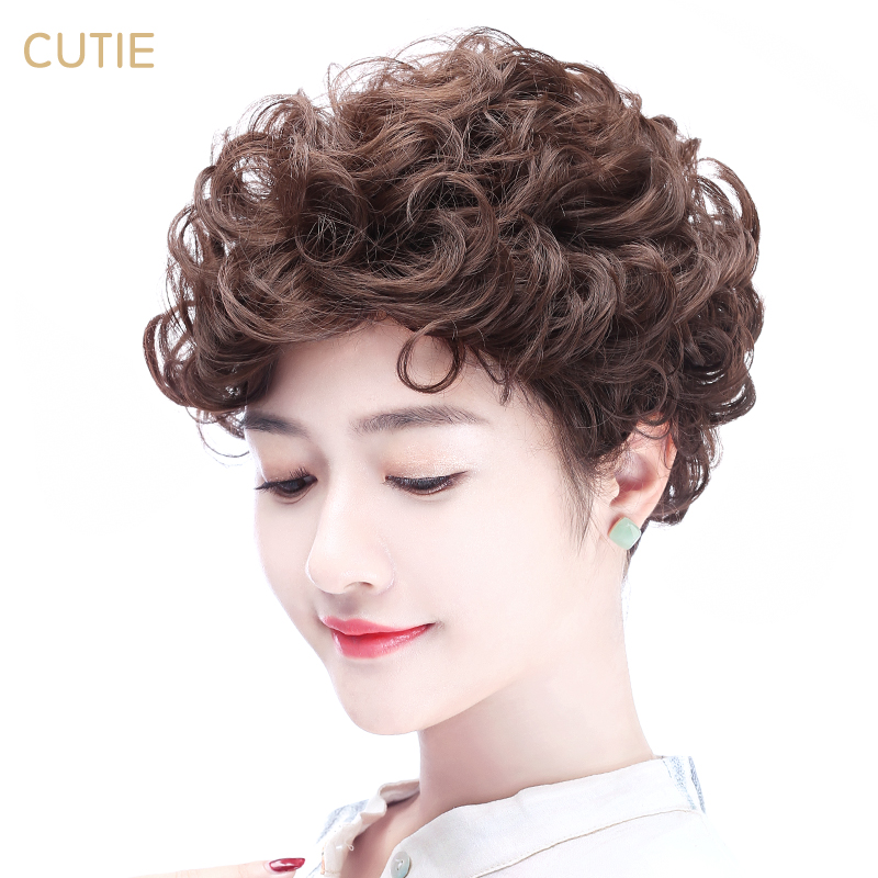 Petitite Middle - aged wig woman Mom wig hair set fluffy short curly hair lifewig hair fashion