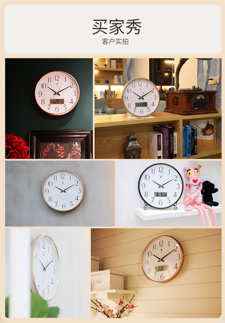 Polaris wall clock Living room silent simple fashion clock hanging watch Perpetual calendar calendar Bedroom temperature week clock
