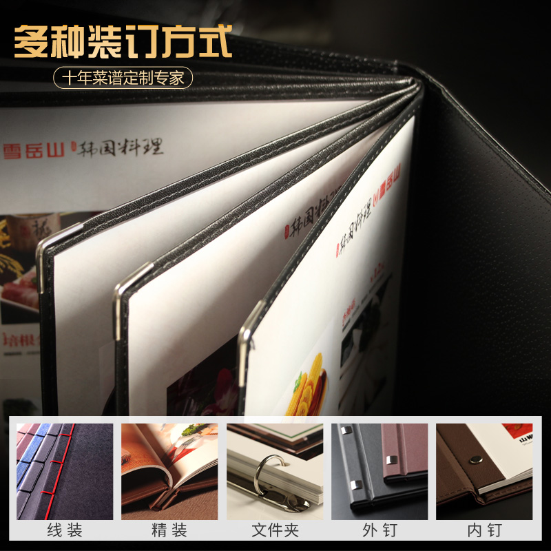 Hardcover menu recipe This design and production of loose-leaf custom-made leather copper nail price list printing high-grade Japanese and Korean creativity